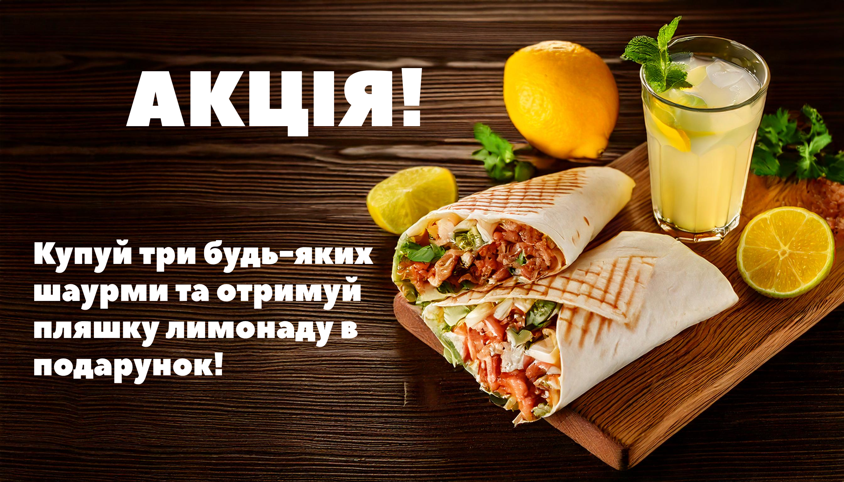 МЕНЮ Шаурма (19) Хот-дог (5) Шаучак Бургери Сулугуні у лаваші (3) Фалафель (2) Фритюр (2) Холодні напої (1) РЕКОМЕНДУЄМО СКУШТУВАТИ ЗакритиШаурма звичайна S 140 грн. Склад: курятина, морква по-корейськи, солоний огірок, фірмовий соус. Додати в обранеДодати в кошик Швидкий перегляд ЗакритиШаурма у булці 130 грн. Склад: курятина, картопля, морква, огірок, коржик, соус. Додати в обранеДодати в кошик Швидкий перегляд ЗакритиХот-дог у лаваші 120 грн. Склад: сосиска, картопля фрі, морква, огірок, фірмовий соус, кетчуп. Додати в обранеДодати в кошик Швидкий перегляд ЗакритиФранцузький хот-дог 80 грн. Додати в обранеДодати в кошик Швидкий перегляд ЗакритиШаурма арабська з куркою 160 грн. Склад: курятина, зелень, томат, солоний огірок, лист салату, фірмовий соус. Додати в обранеДодати в кошик Швидкий перегляд ЗакритиФалафель у питі 120 грн. Склад: піта, фалафель, зелень, маринована цибуля, солоний огірок, фірмовий соус. Додати в обранеДодати в кошик Швидкий перегляд ЗакритиШаучак з куркою 140 грн. Склад: курятина, томат, зелень, фірмовий соус. Додати в обранеДодати в кошик Швидкий перегляд ЗакритиСулугуні з куркою 170 грн. Склад: куряче м'ясо, сир сулугуні, томат, зелень, фірмовий соус. Додати в обранеДодати в кошик Швидкий перегляд