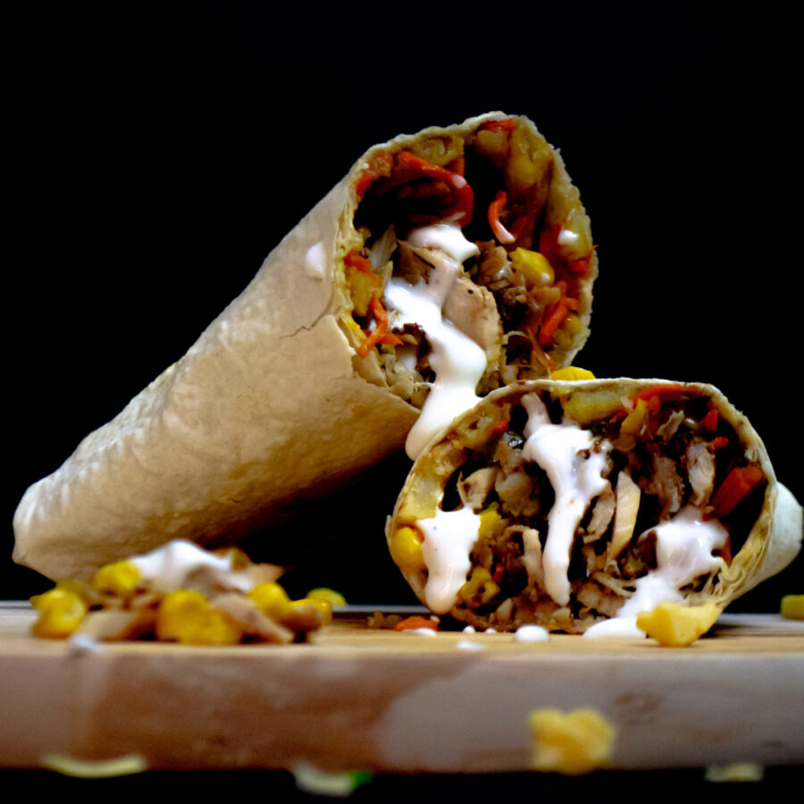 Склад: курятина, морква по-корейськи, солоний огірок, фірмовий соус.