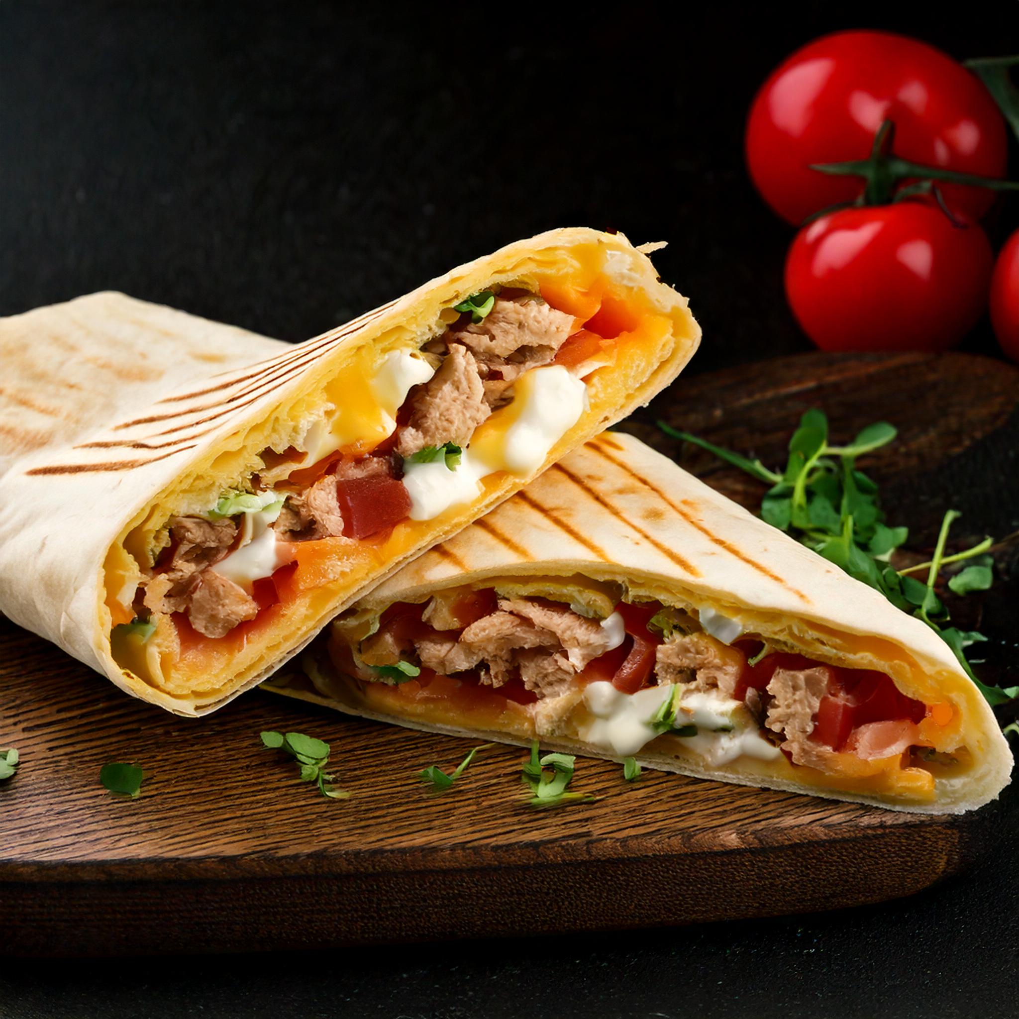 Склад: куряче м’ясо, сир сулугуні, томат, зелень, фірмовий соус.